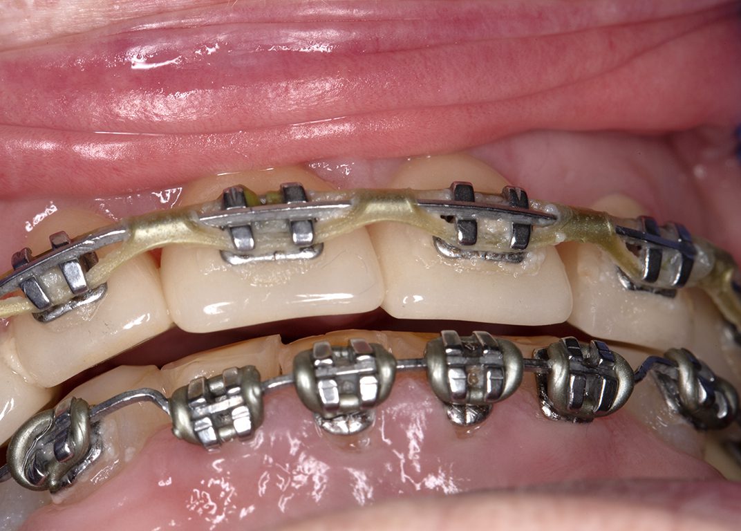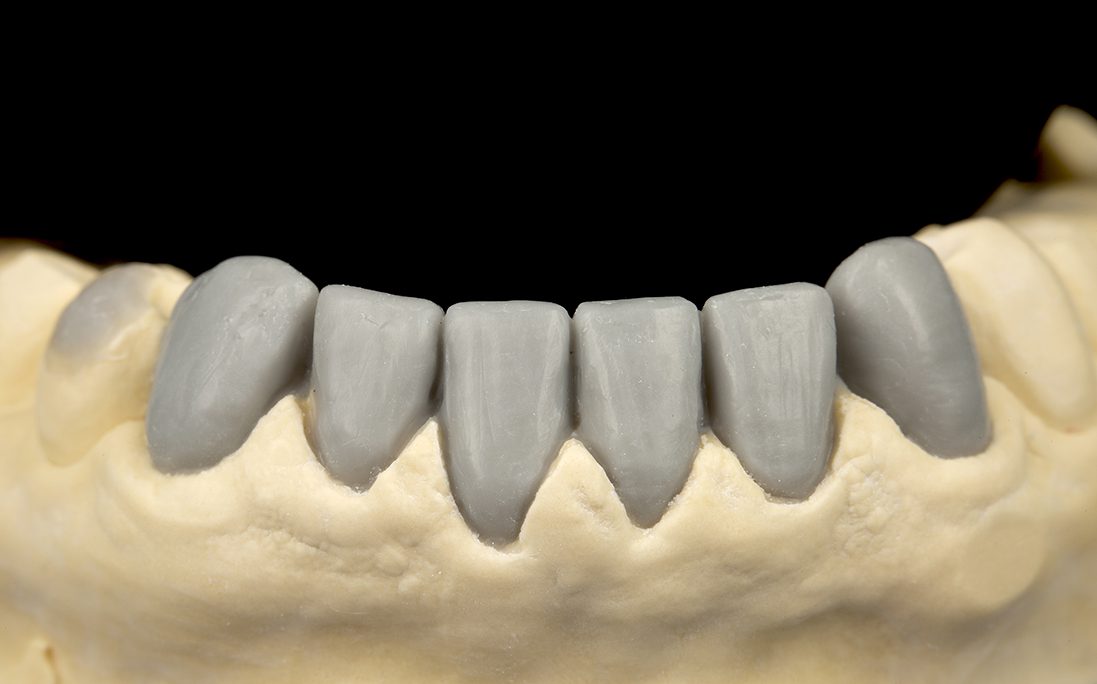 A diagnostic wax-up for an ideal occlusal scheme was fabricated after removal of the orthodontic brackets.